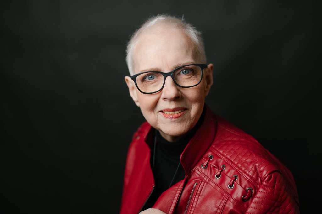Portrait frontal – dunkel, quer, rote Lederjacke